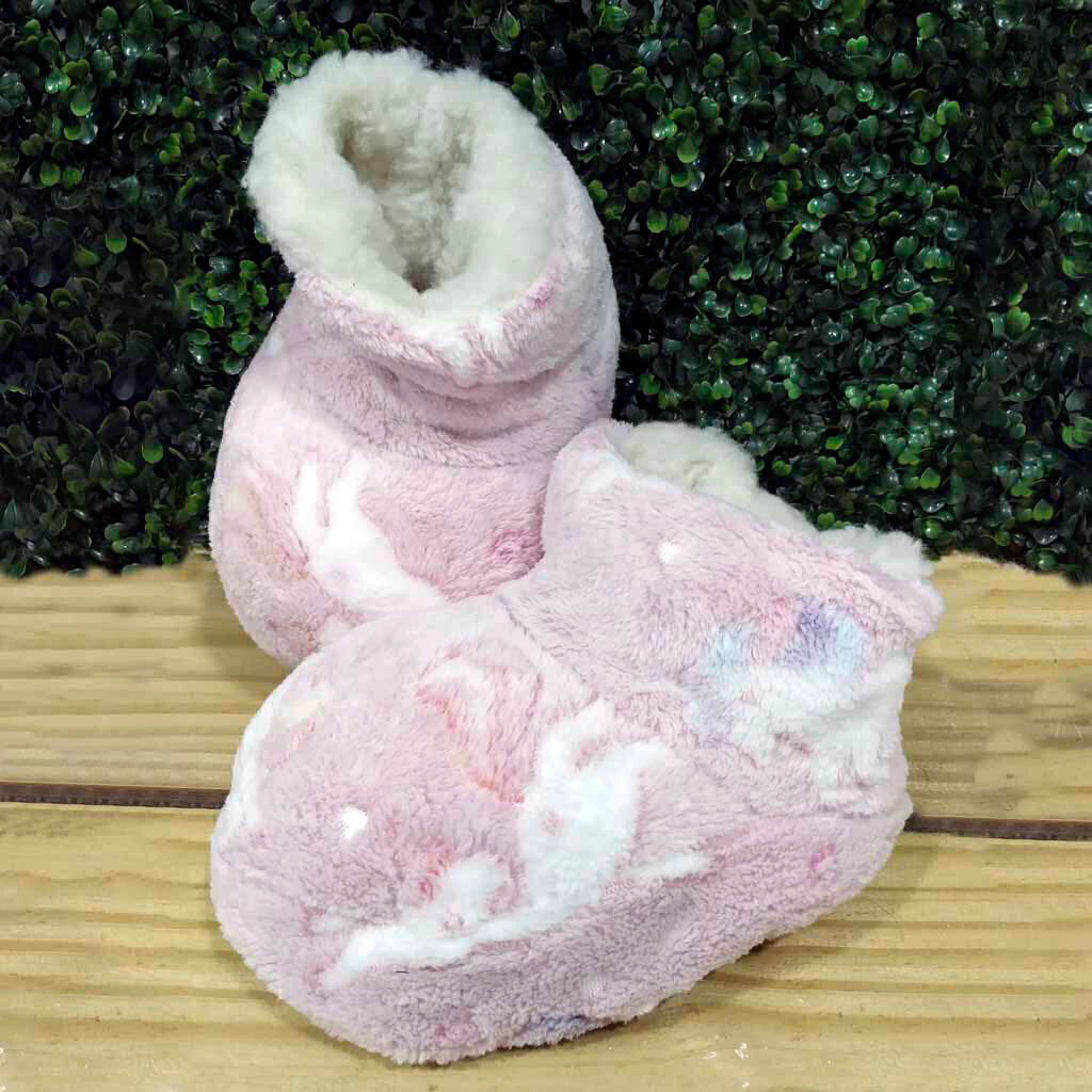 Pantufla cerrada tipo "garra". Capellada aloba suave, interior de peluche poliéster. Suela EVA antideslizante.