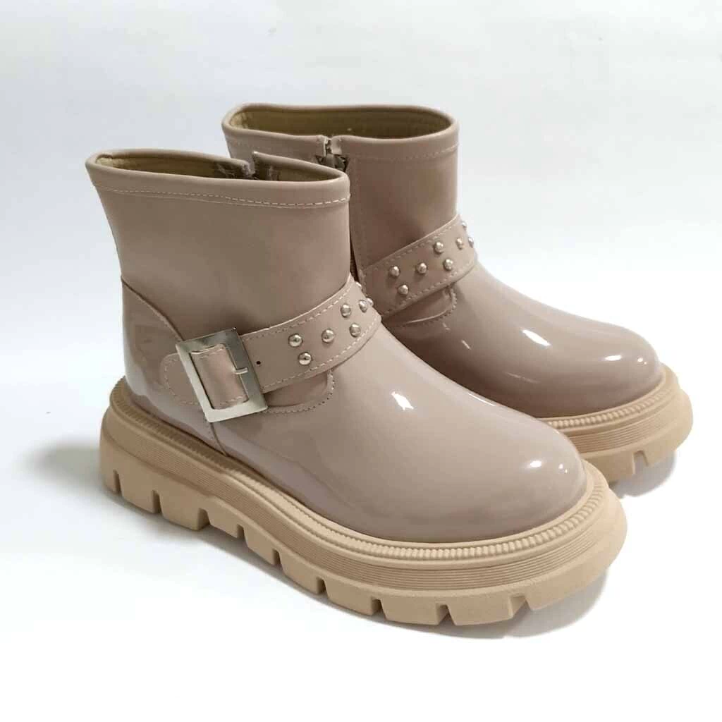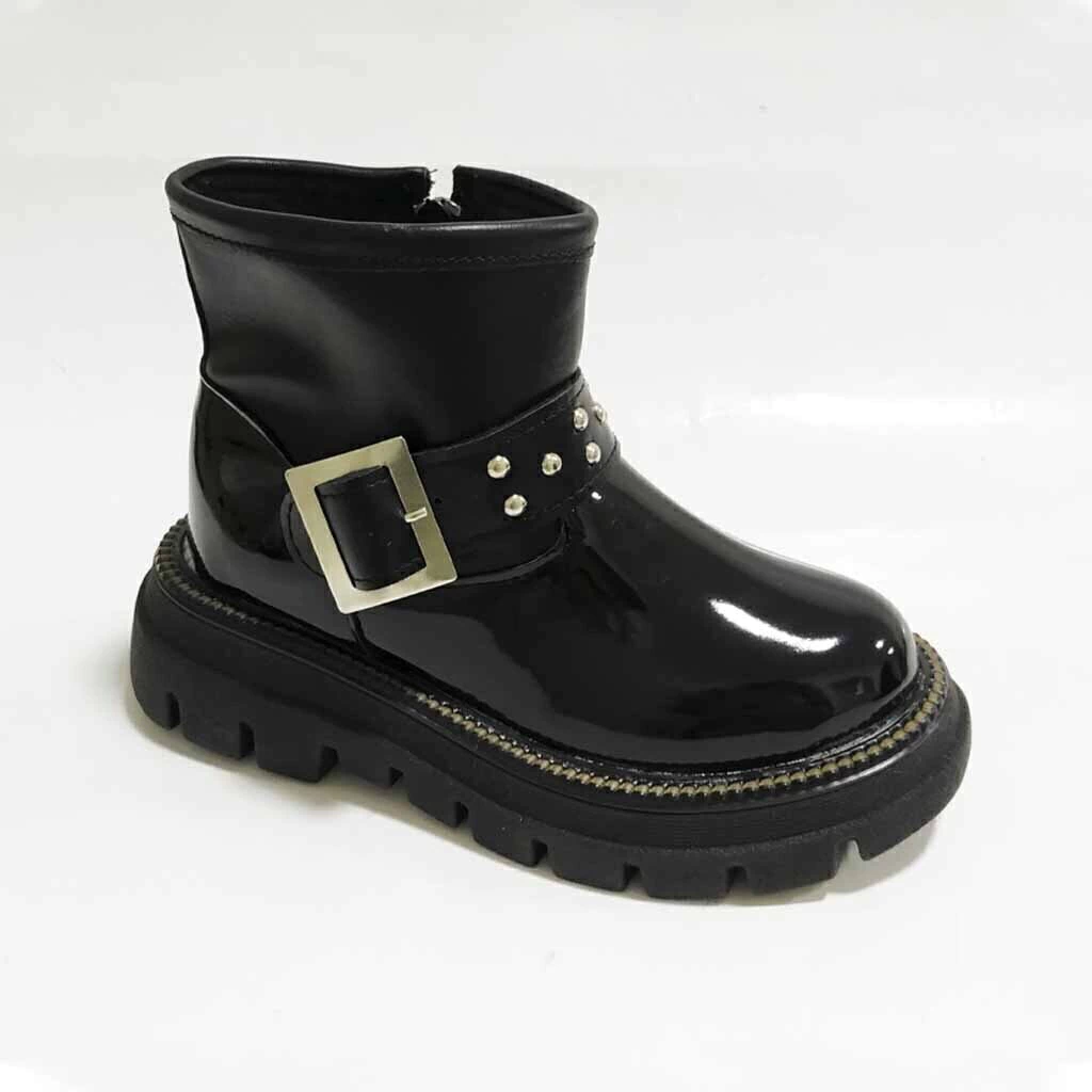 Bota caña media/alta. Capellada combinada: símil cuero, charol y sintético. Suela EVA + TPR resistente a la abrasión con perfecto agarre en todas las superficies.