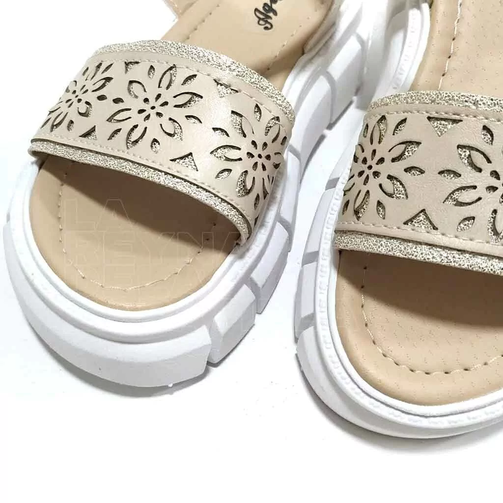 Sandalia urbana tipo gladiadora. Capellada símil cuero con apliques tipo tachas. Suela EVA + TPR resistente a la abrasión con perfecto agarre en todas las superficies.