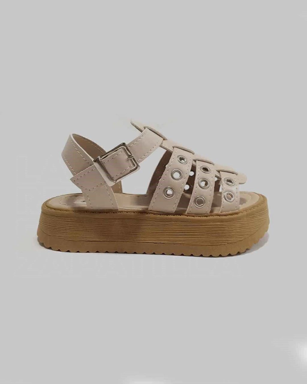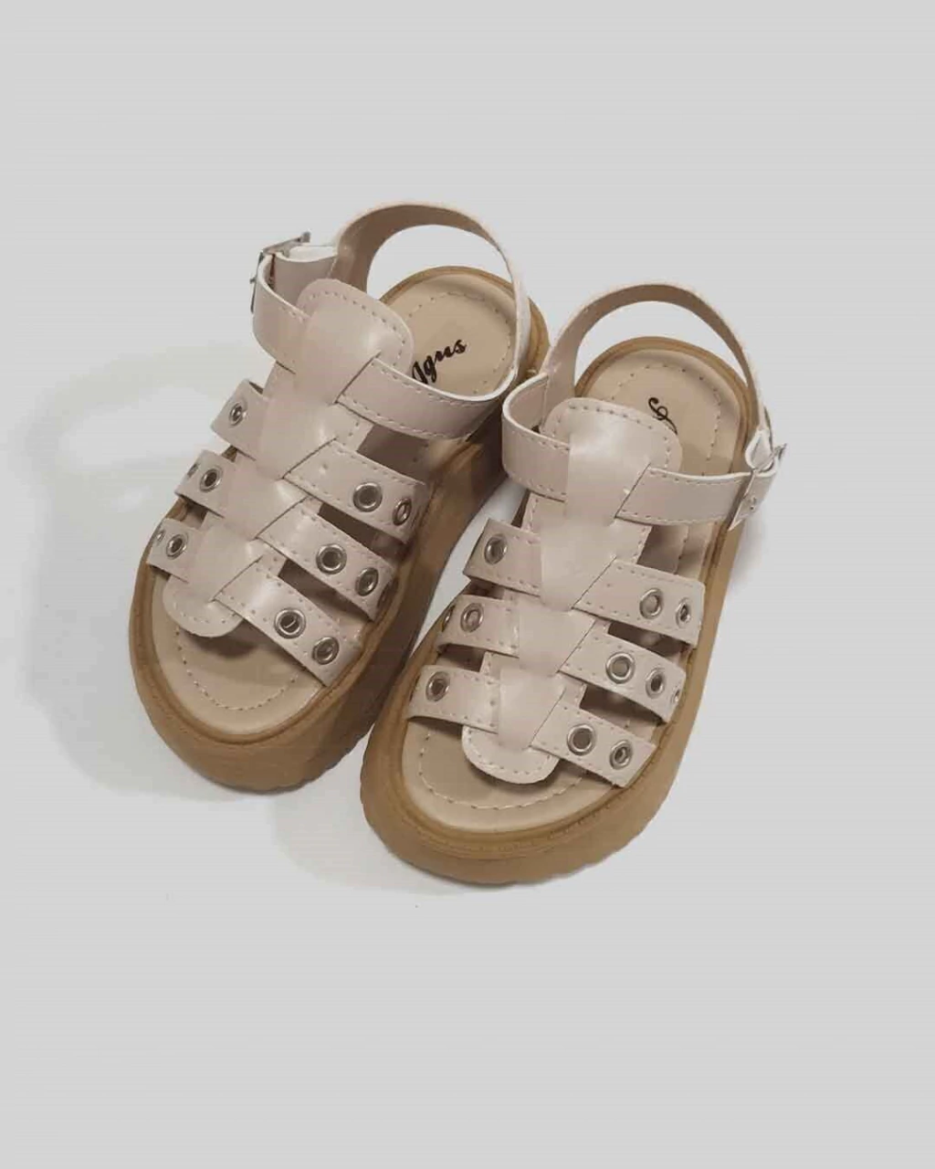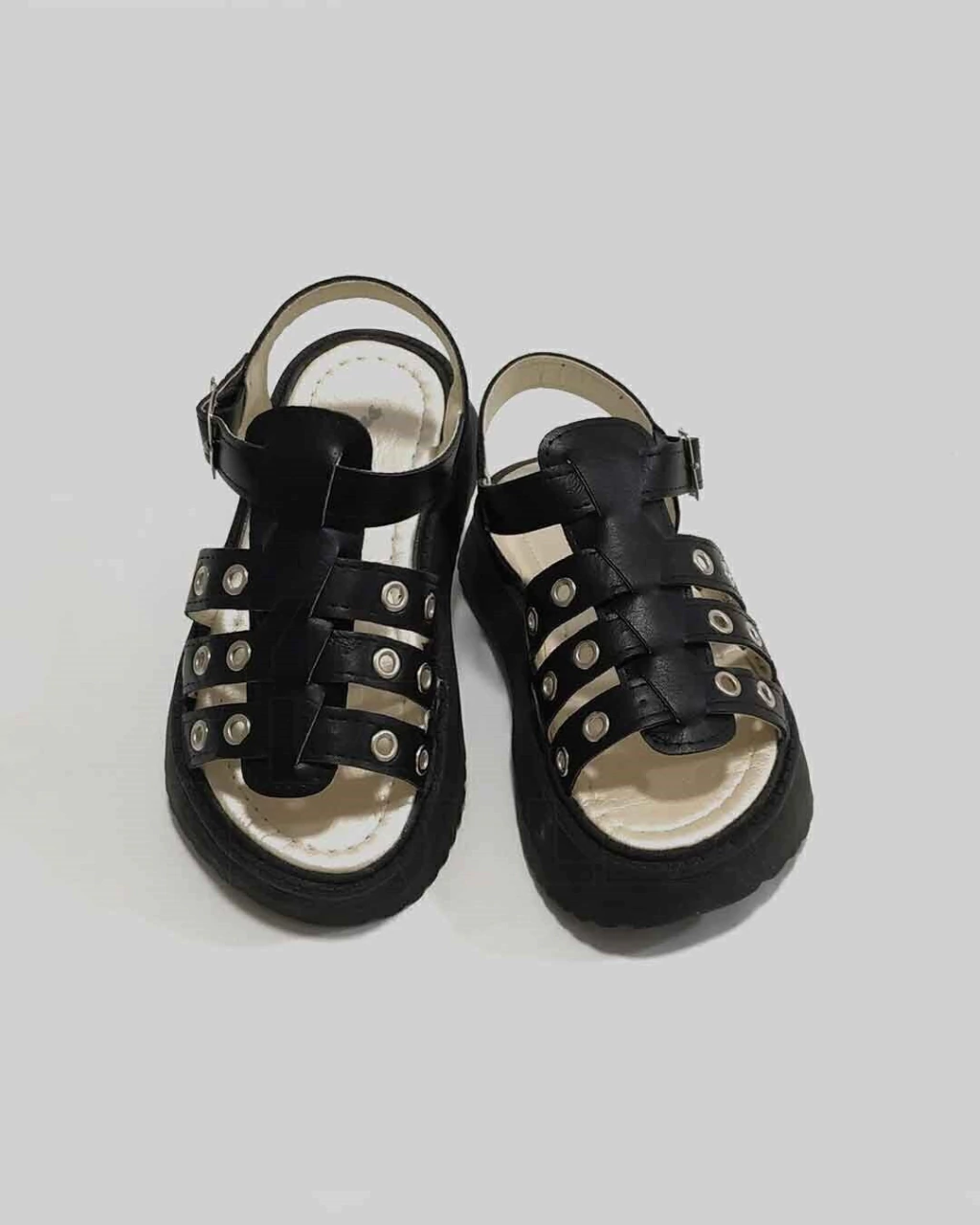 Sandalia francisacana abierta. Capellada símil cuero con apliques. Suela EVA + TPR resistente a la abrasión con perfecto agarre en todas las superficies.