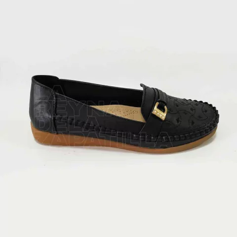 Elegancia y confort se unen en este mocasín de dama, confeccionado en cuero PU labrado. Con plantilla anatómica y suela de PVC, son livianos y perfectos para acompañarte en tu día a día con estilo y comodidad.