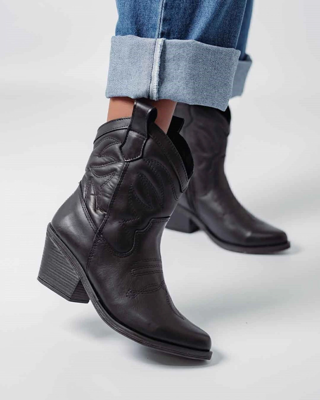 Bota texana caña media de cuero vacuno, forrada con textil otorgando suavidad y confort. Recorte con detalle texano y costuras con relieve que realzan el look. Tambien tiene calzadores para facilitar el calce.