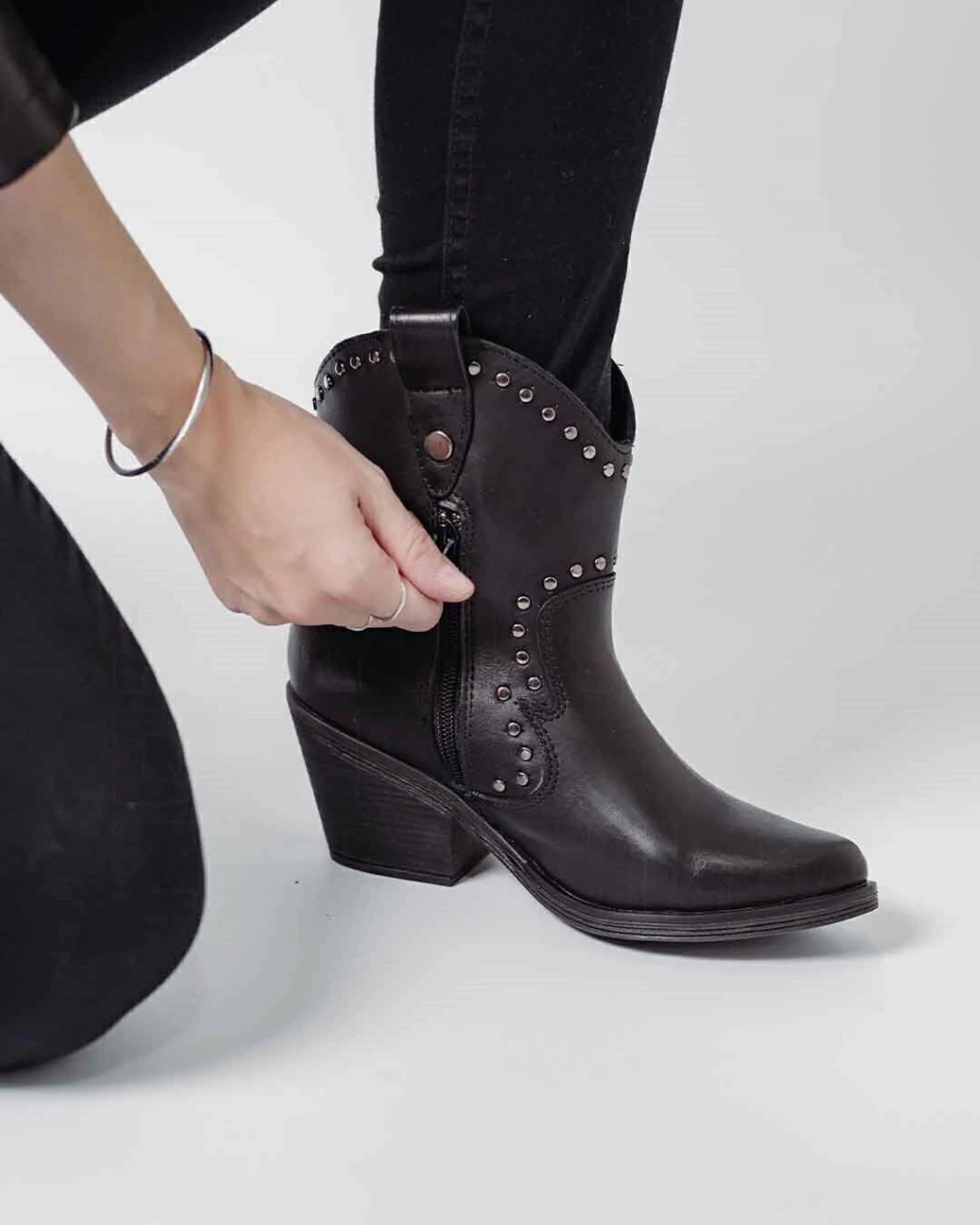 Bota texana caña media de cuero vacuno, forrada con textil otorgando suavidad y confort. Recorte con detalle texano y costuras con relieve que realzan el look. Tambien tiene calzadores para facilitar el calce.