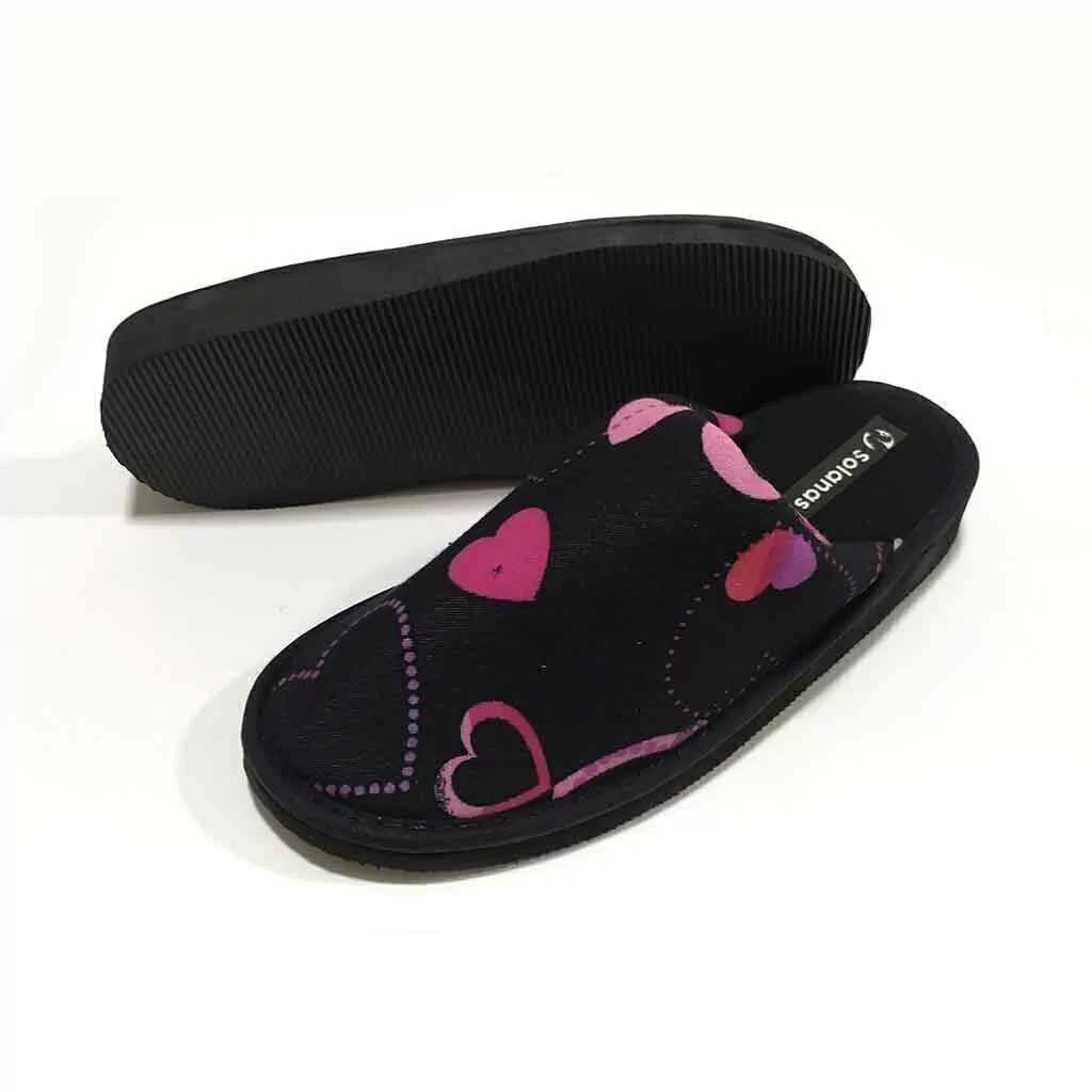 Las pantuflas Solanas están confeccionadas con textil algodón, un material suave, cómodo y abrigado. Poseen una plantilla mullida y la suela de goma EVA, es liviana flexible y antideslizante.