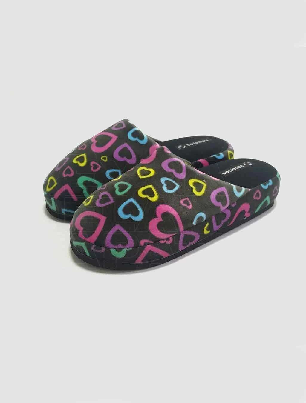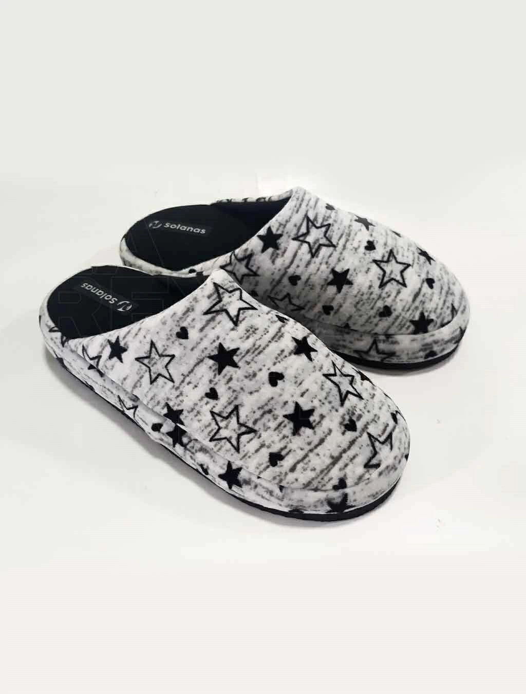 Las pantuflas Solanas están confeccionadasas con textil aloba, un material suave, cómodo y abrigado. Poseen una plantilla mullida y la suela de goma EVA, es liviana flexible y antideslizante.